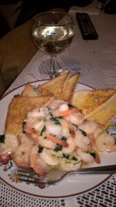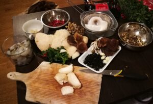 Potrzebne składniki: soplówka jeżowata, krewetki, czosnek, masło, zielona pietruszka, opcjonalnie ostre papryczki chili. Jako dodatek grzanki z pieczywa tostowego.