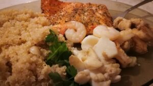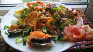 Na zdjęciach z talerzami są jeszcze kalmary, łosoś, sałata, ale o nich następnych przepisach.